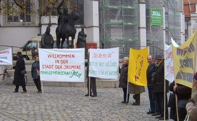 Mahnwache "Wider die Resignation in der Ökumene" am Morgen vor dem Augsburger Rathaus, in dem das Symposium stattfindet