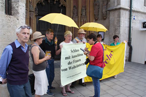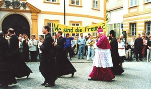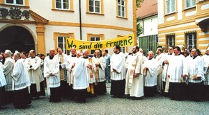 Gleichberechtigung der Frauen: Hier die Aktionen Februar 2018: "Mahnwache für Frauenordination" anlässlich der Bischofsvollversammlung im in Ingolstadt 2013: Mahnwache "Schluss mit Ausschluss der Frauen von Weiheämtern!" vor dem Eichstätter Dom und 2003: "Wo sind die Frauen?" nach der Priesterweihe in Eichstätt |